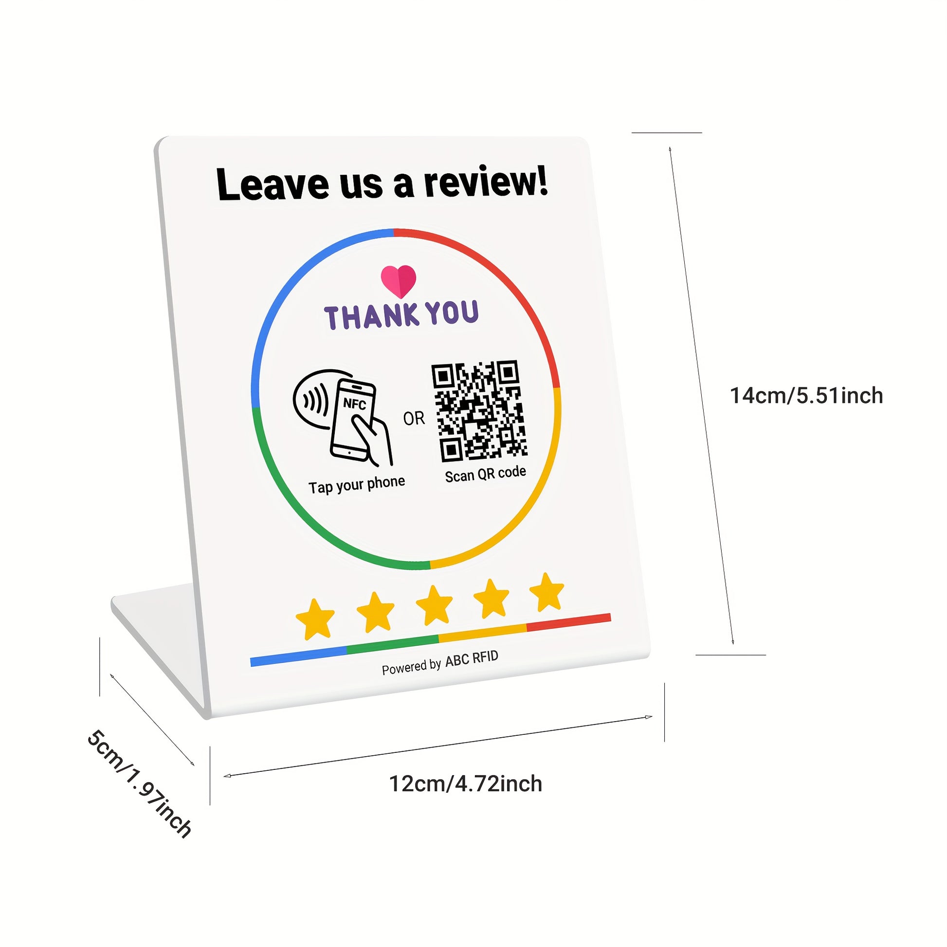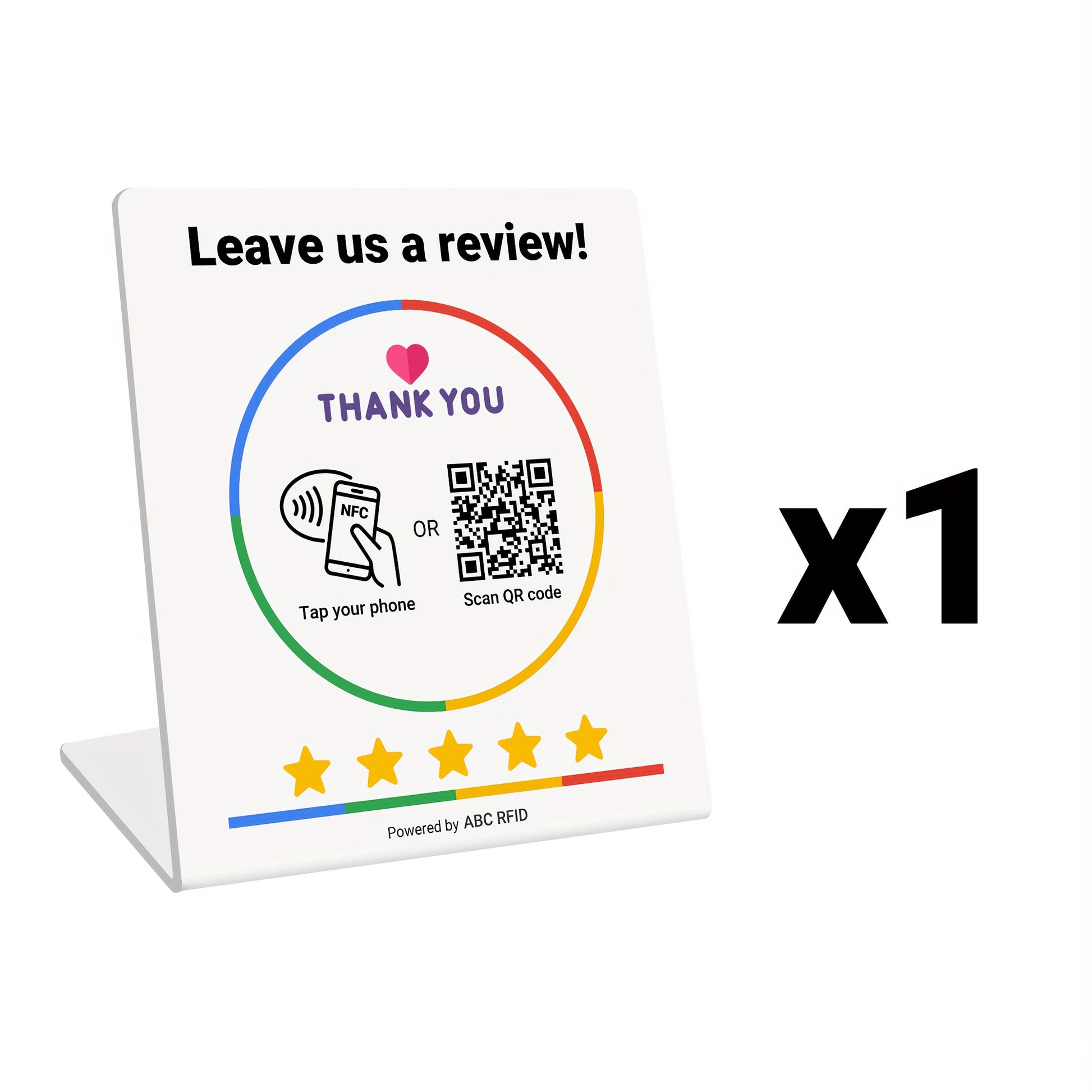 Easily get more reviews with the review stand for and others. Simply tap or scan to leave a review!